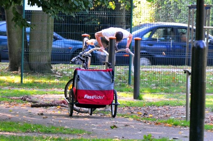 Jaroslaw Bieniuk cwiczy na plenerowej silowni PAPARAZZI