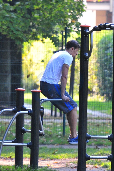Jaroslaw Bieniuk cwiczy na plenerowej silowni PAPARAZZI
