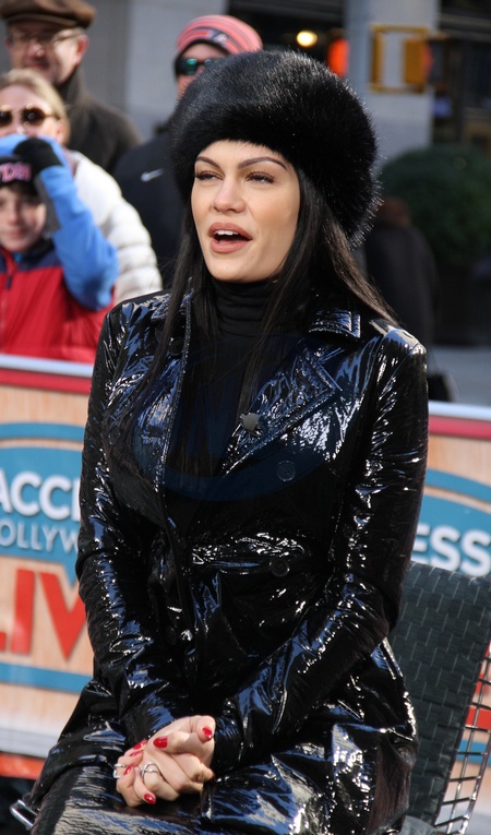 Jessie J w futrzanej czapie w Access Hollywood Live, Nowy Jork