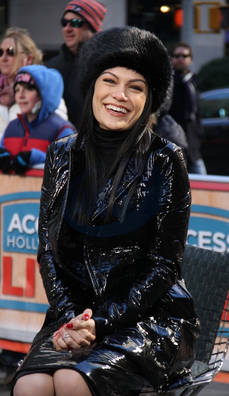 Jessie J w futrzanej czapie w Access Hollywood Live, Nowy Jork