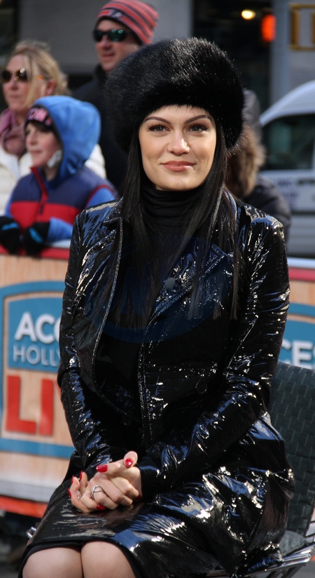 Jessie J w futrzanej czapie w Access Hollywood Live, Nowy Jork