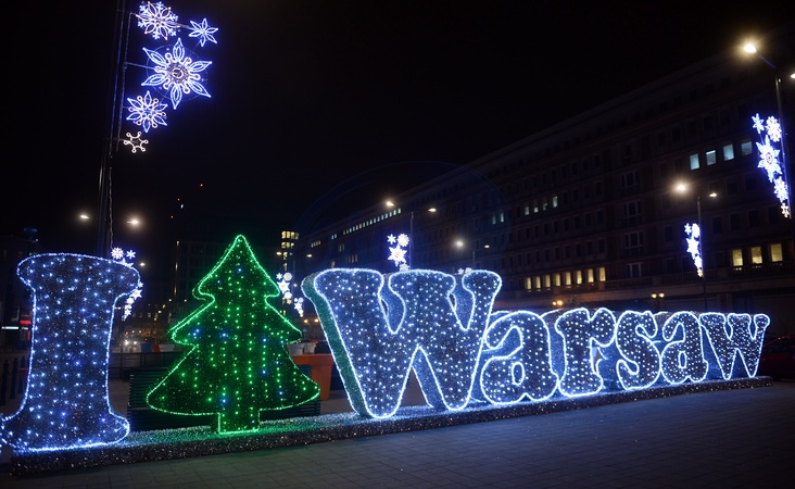 Iluminacja Warsaw napis