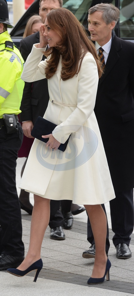 Ksiezna Kate w bialym plaszczyku odwiedzila szkole w Portsmouth