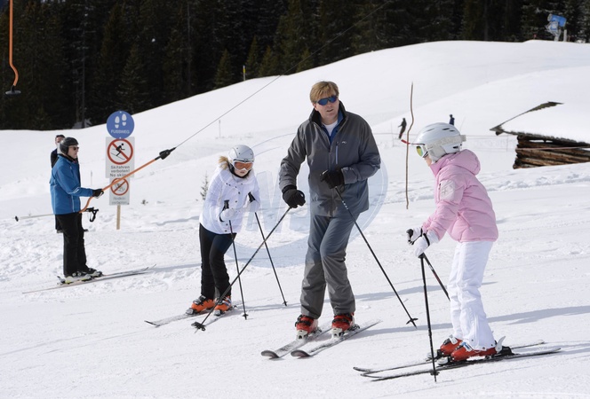 Krol Holandii Wilhelm Aleksander z rodzina na nartach w Austrii
