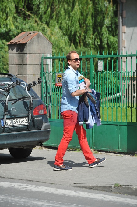 Dariusz Krupa z synem Allanem wychodzi ze szkoly PAPARAZZ 28-06-2012