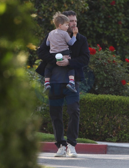 Zarosniety Ben Affleck z synkiem w Santa Monica