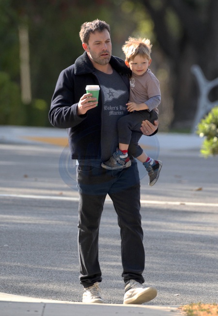 Zarosniety Ben Affleck z synkiem w Santa Monica