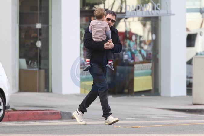 Zarosniety Ben Affleck z synkiem w Santa Monica