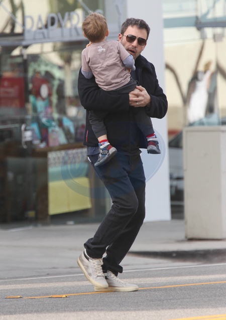 Zarosniety Ben Affleck z synkiem w Santa Monica