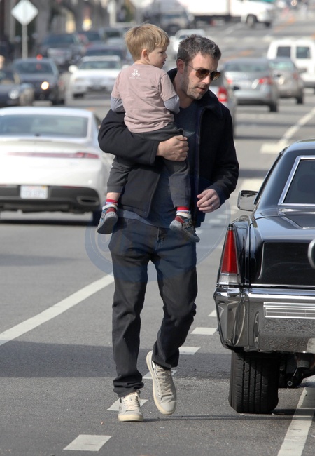 Zarosniety Ben Affleck z synkiem w Santa Monica