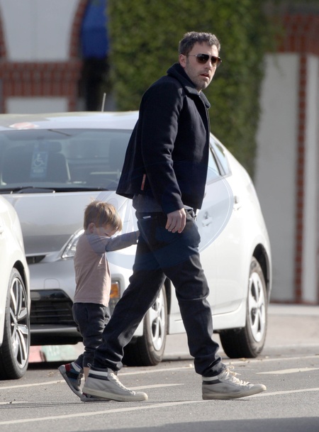 Zarosniety Ben Affleck z synkiem w Santa Monica