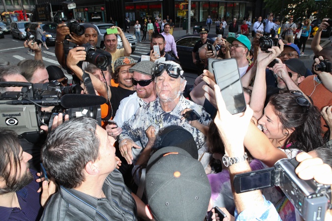 Bill Murray w brudnym kombinezonie przybyl do Show Lettermana, Nowy Jork