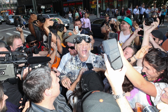 Bill Murray w brudnym kombinezonie przybyl do Show Lettermana, Nowy Jork