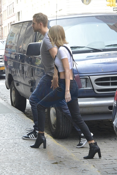 Calvin Harris i Taylor Swift trzymaja sie za rece, Nowy Jork