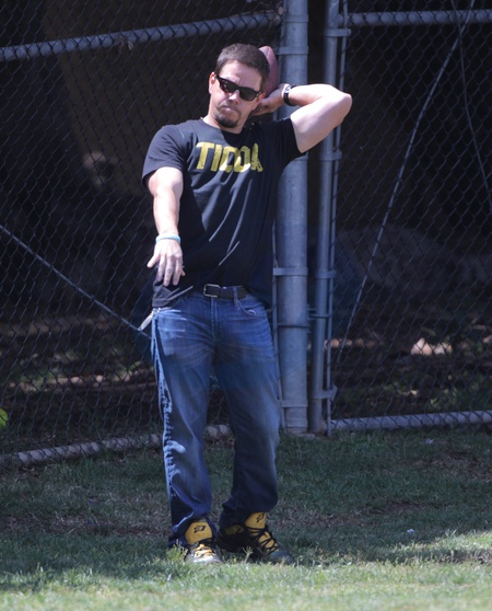 Mark Wahlberg z synem na meczu