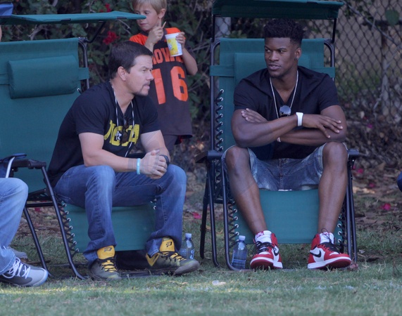 Mark Wahlberg z synem na meczu