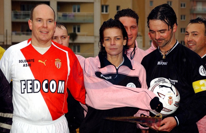 Mecz w pilke nozna pomiedzy druzyna cyrkowcow a druzyna Barbajean w ktorej gra ksiaze Monaco Albert