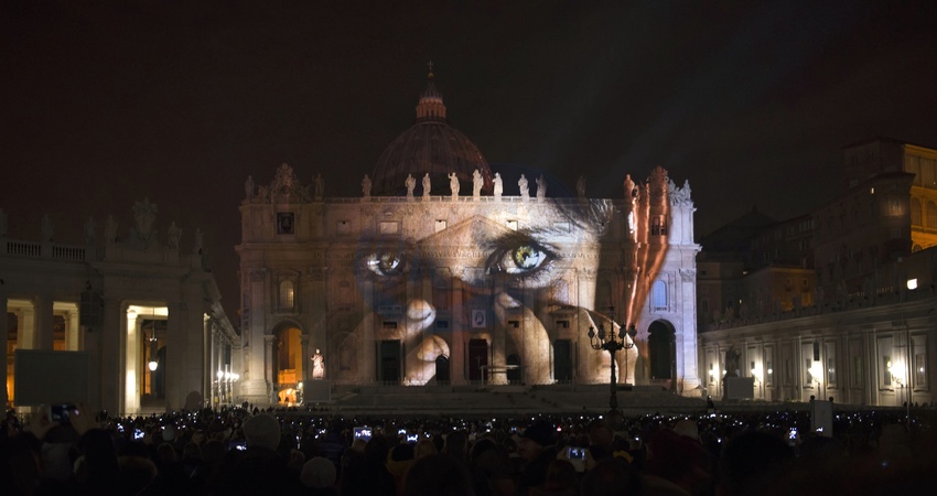 Niezwykly pokaz swietlny na fasadzie bazyliki Swietego Piotra