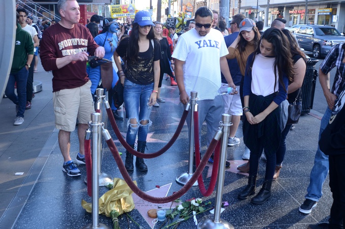 Kwiaty przy hollywodzkiej gwiezdzie Carrie Fisher
