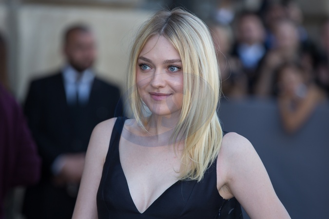 Dakota Fanning w pogrubiajacej sukience idzie na pokaz Diora