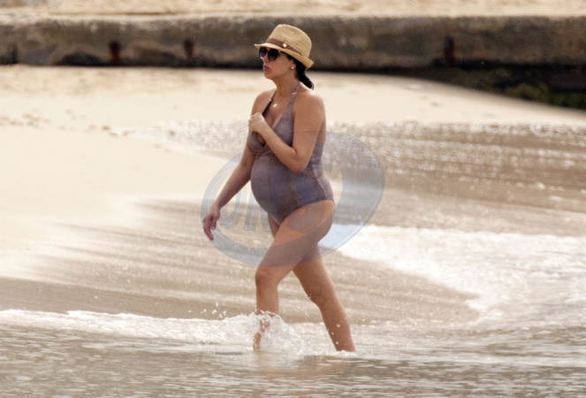 Sarah Silverman z brzuszkiem na plazy, Barbados