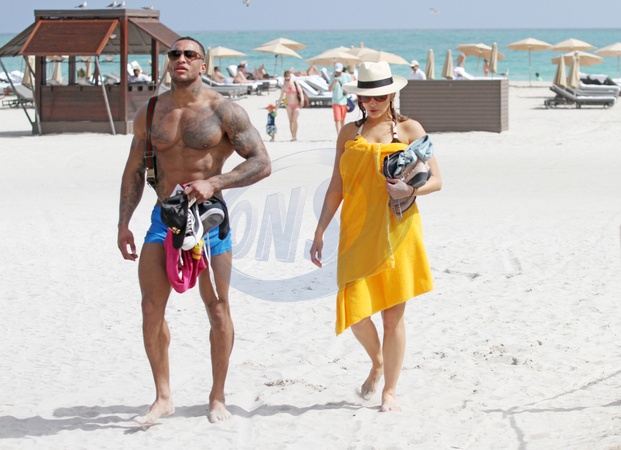 Kelly Brook z chlopakiem na plazy w Miami