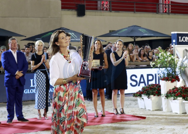 Ksiezniczka Karolina z corka Charlotte podczas gali Jumping International de Monaco