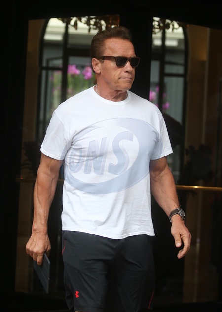 Arnold Schwarzenegger z dziewczyna na rowerach w Paryzu