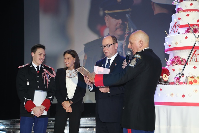 Monakijska rodzina ksiazeca na ceremonii 200. rocznicy Compagnie des Carabiniers