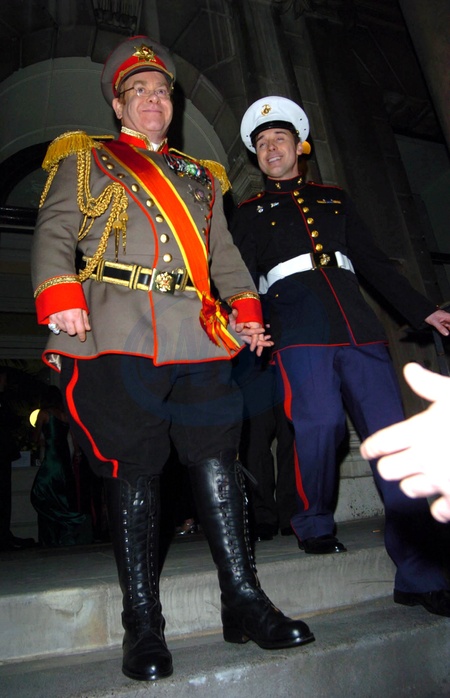 Elton John wydaje 'mundurowe' przyjecie w londynskim Shoreditch Town Hall