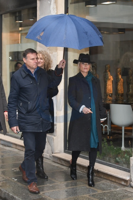 Kate Moss na zakupach, ochroniarz nosi jej parasolke