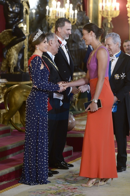 Krolowa Letizia w granatowej sukni, obszytej perelkami
