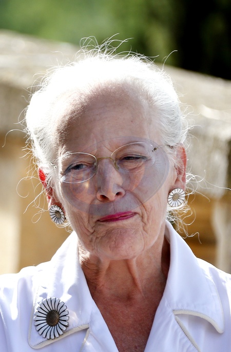 Krolowa Danii - Malgorzata II pozuje na tle winnic i swojego zamku Caix