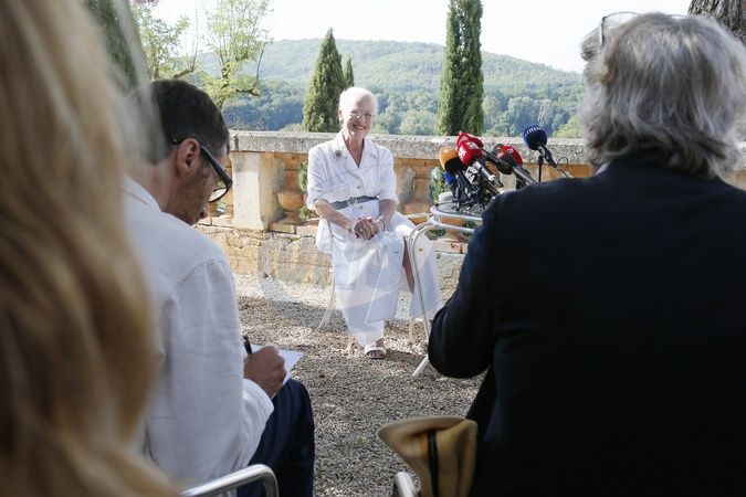 Krolowa Danii - Malgorzata II pozuje na tle winnic i swojego zamku Caix