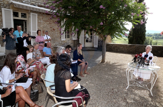 Krolowa Danii - Malgorzata II pozuje na tle winnic i swojego zamku Caix