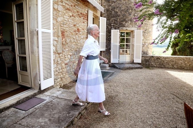Krolowa Danii - Malgorzata II pozuje na tle winnic i swojego zamku Caix