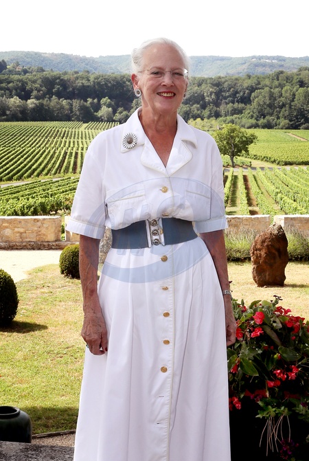 Krolowa Danii - Malgorzata II pozuje na tle winnic i swojego zamku Caix