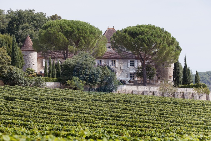 Krolowa Danii - Malgorzata II pozuje na tle winnic i swojego zamku Caix