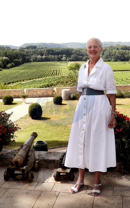 Krolowa Danii - Malgorzata II pozuje na tle winnic i swojego zamku Caix