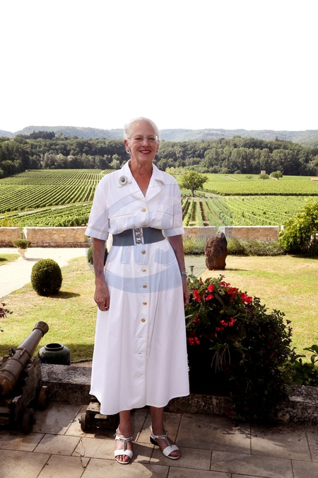 Krolowa Danii - Malgorzata II pozuje na tle winnic i swojego zamku Caix
