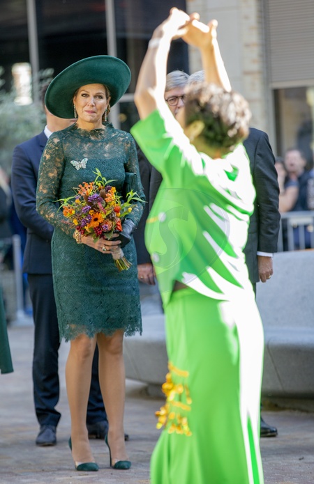 Krolowa Maxima w koronkowej, zielonej sukience i kapeluszu