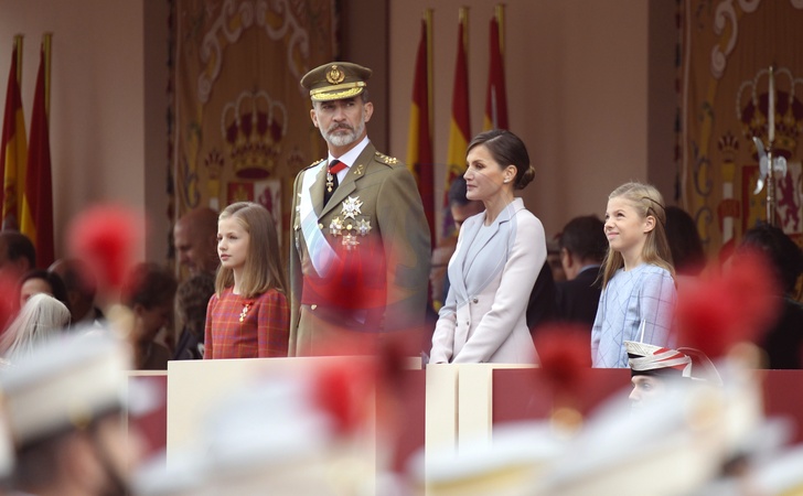 Hiszpanska para krolewska z corkami podczas Dnia Narodowego