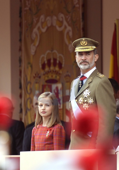 Hiszpanska para krolewska z corkami podczas Dnia Narodowego