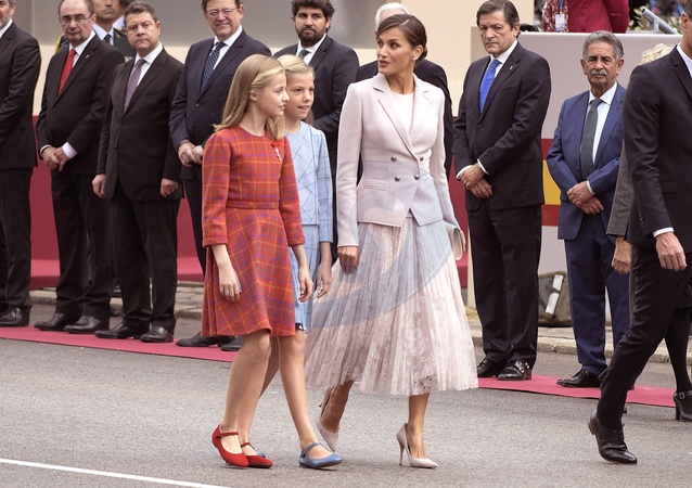 Hiszpanska para krolewska z corkami podczas Dnia Narodowego