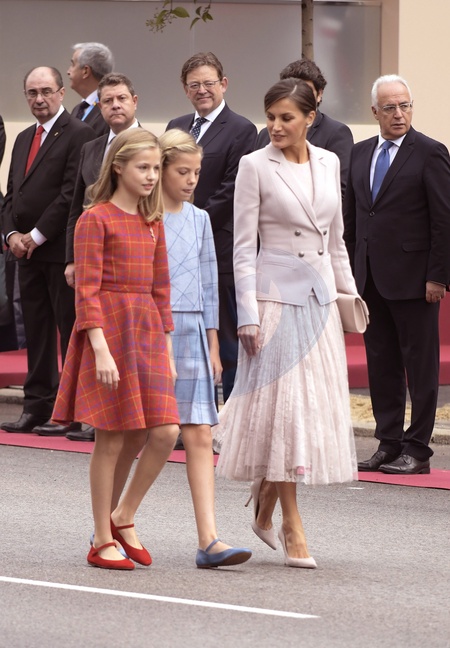 Hiszpanska para krolewska z corkami podczas Dnia Narodowego