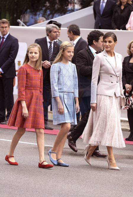 Hiszpanska para krolewska z corkami podczas Dnia Narodowego