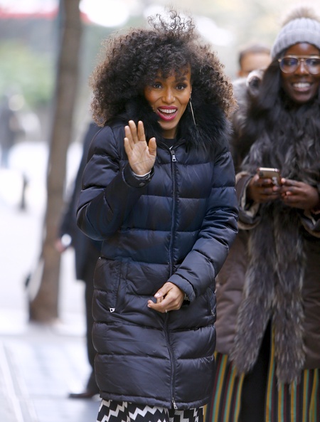 Kerry Washington w cieplej kurtce i rozowych szpilkach