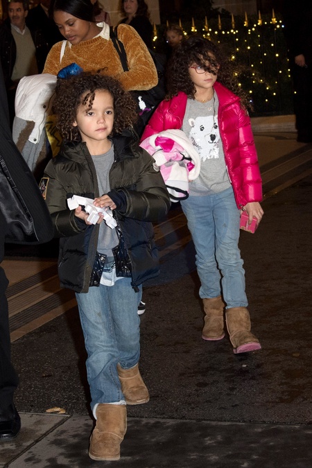 Mariah Carey w bialym futerku z dziecmi