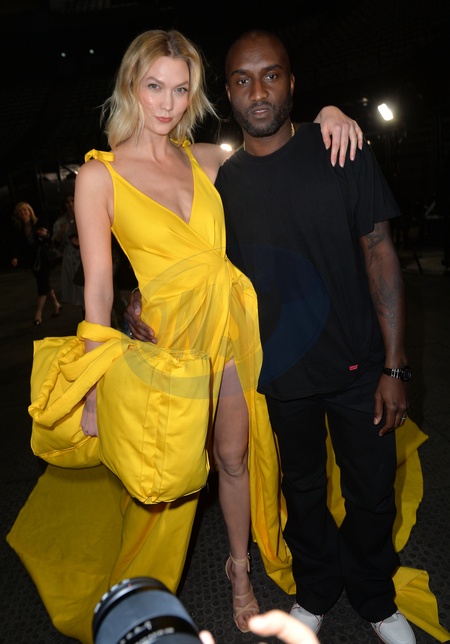 Karlie Kloss z ogromnym, zoltym trenem na backstage pokazu Off-White