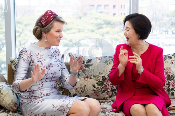 Belgijska para krolewska podczas wizyty w Korei